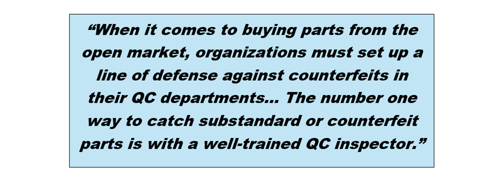 IDEA-ICE-3000 Professional Inspector Certification . For firms which manufacture or distribute electronic products for the defense, consumer, and aerospace markets, the prevention of counterfeit electronic components from entering the supply chain is the focus of new quality standards and mitigation measures. For more information on this phenomenon, read my article on Counterfeit Electronic Parts ; https://www.aviationsuppliers.org/counterfeit-electronic-parts